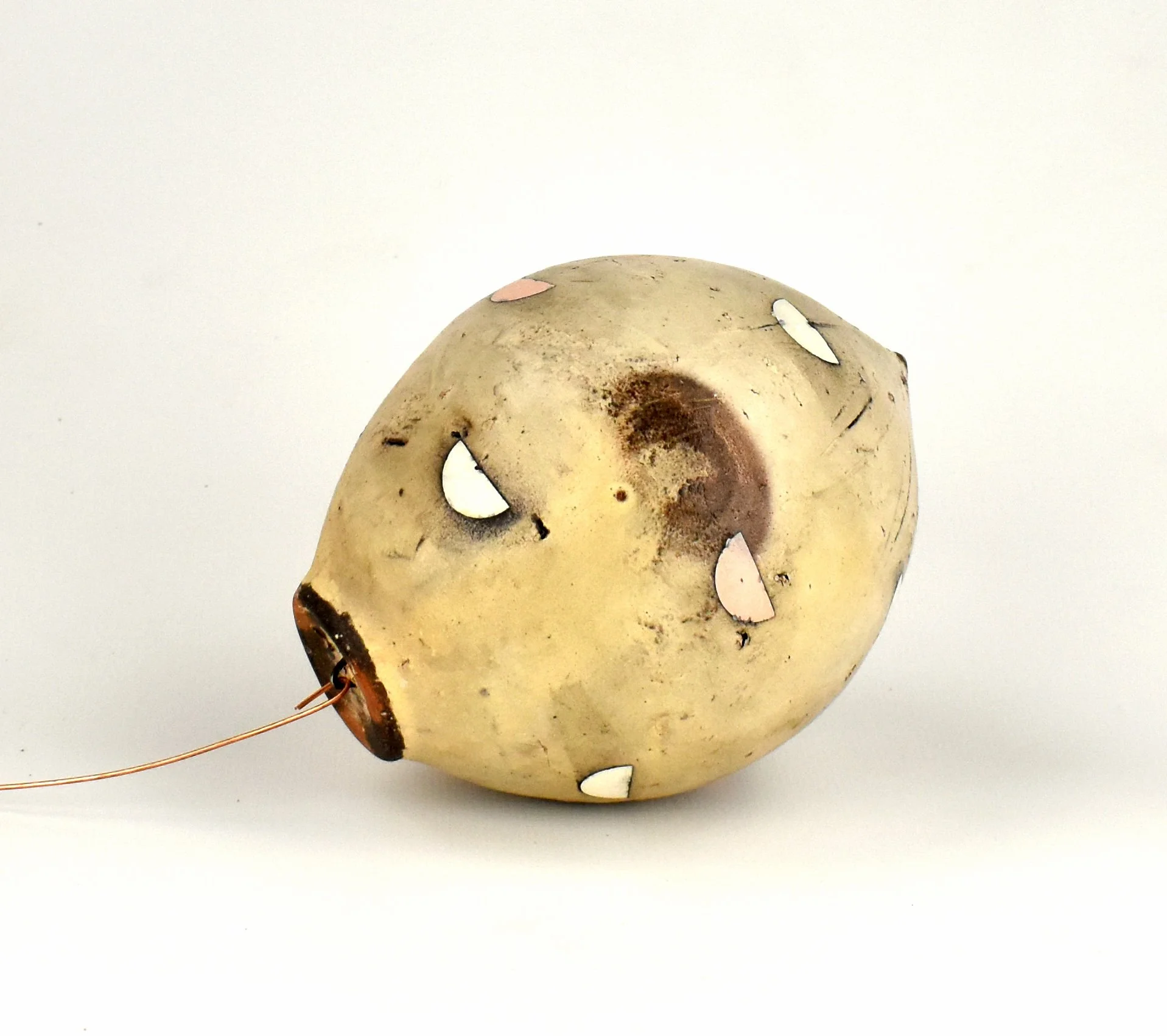 This piece was made on the wheel. Then was fired in a soda kiln. Its surface is a result from both soda licking across its surface and the iron showing through the slip. Soda ash contains sodium and melts at these high temperatures; 2050-2150F to become a vaporized glaze in the kiln. All my pots are sanded by hand to give a soft feel and make them more friendly to use. Some of the interiors are lined with a white glaze. They are safe to use, but I recommend handling with care, but encourage using them.